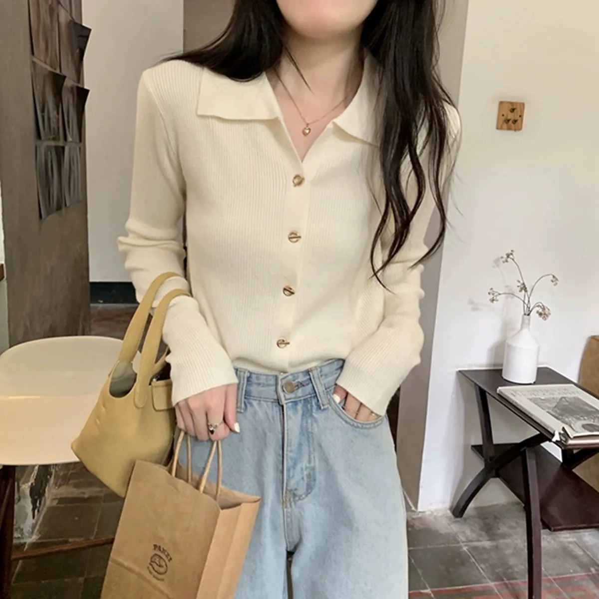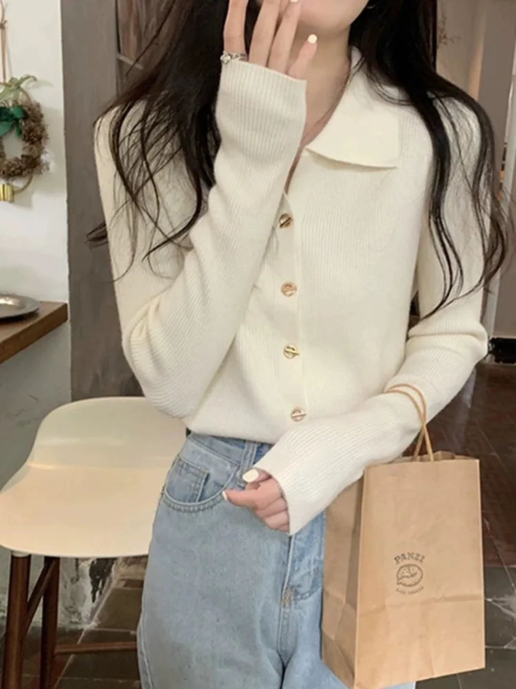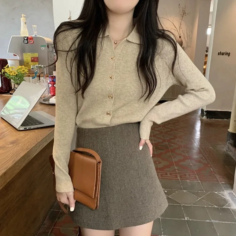 Polo Lapel Wool Knit Cardigan