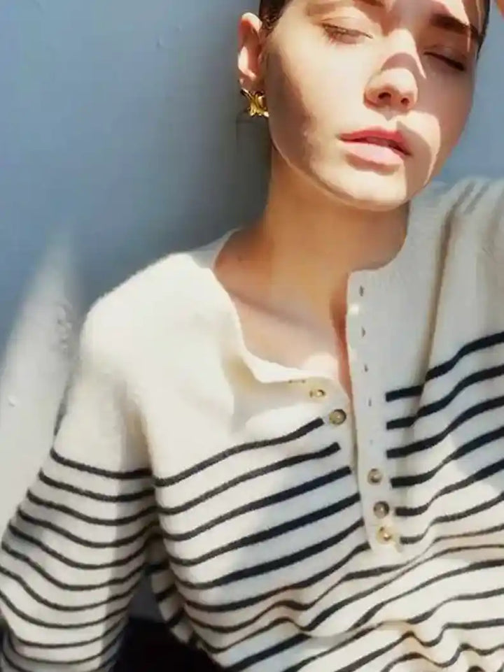Button Detailed Striped Wool Pullover