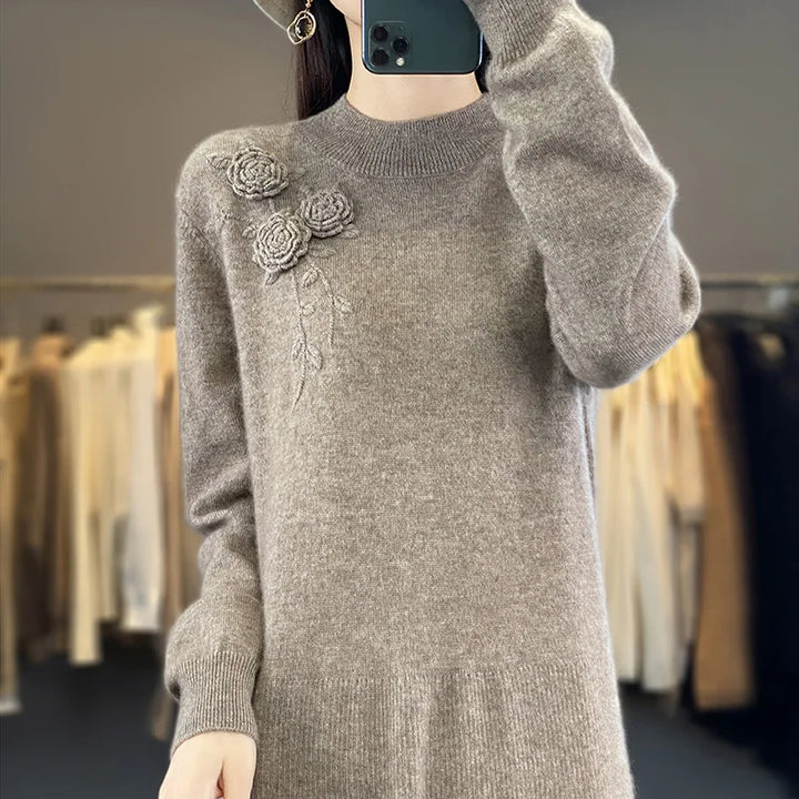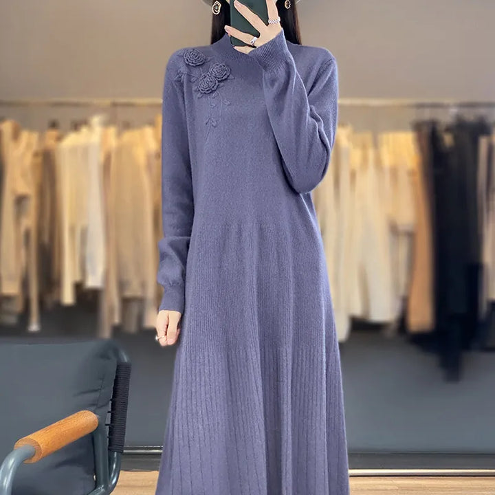 100% Pure Wool Knitted A-Line Long Sleeves Dress