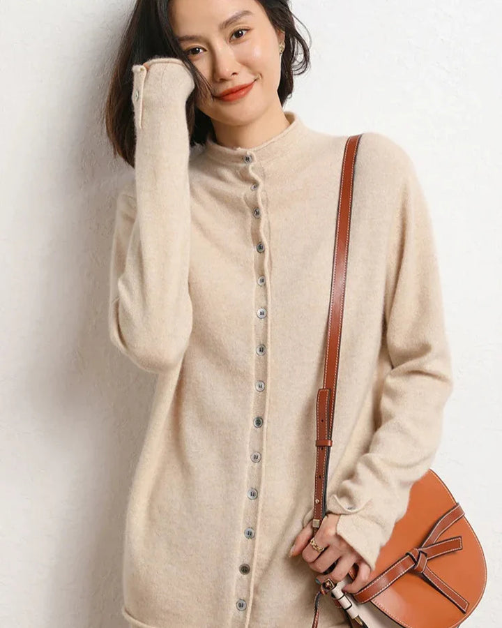 Cashmere Knitted Causal Stand-up Collar Cardigan