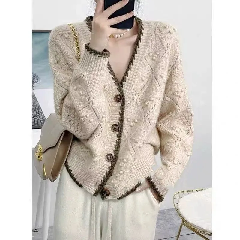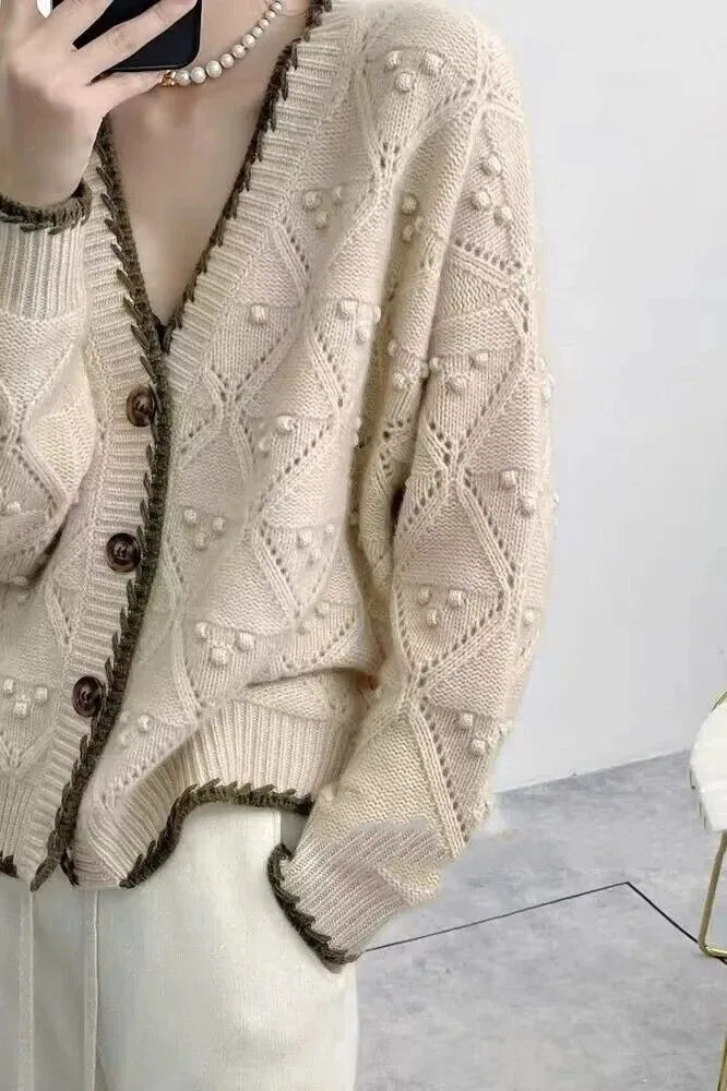 Color Block Crocheted 100% Cashmere Knit Cardigan