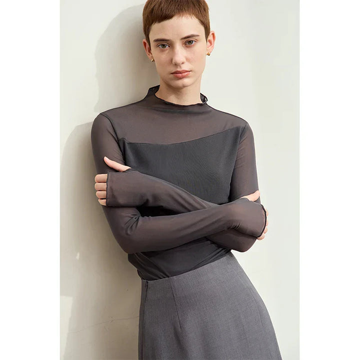 Half-high Neck Micro Perspective Slim Retro Shirt