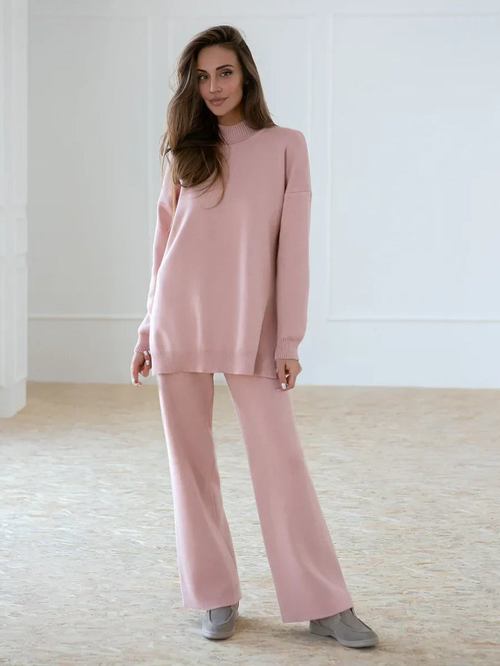 Half Turtleneck Sweater & Wide Leg Pants Knitted Set