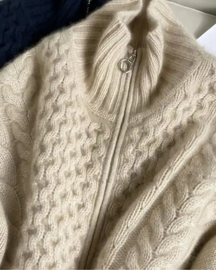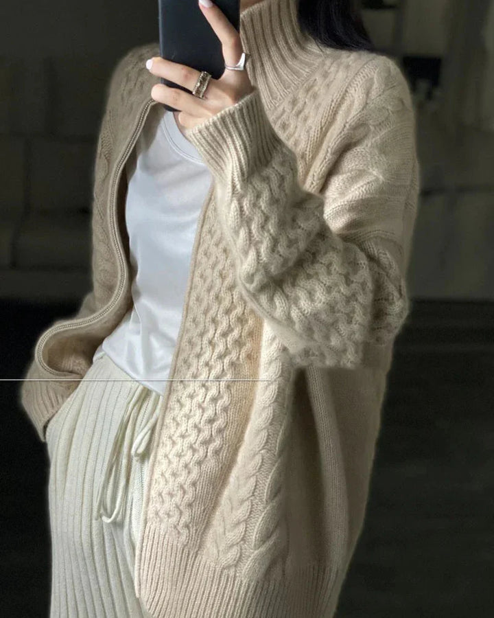 High-Collar Zip-Up Wool Cardigan Coat