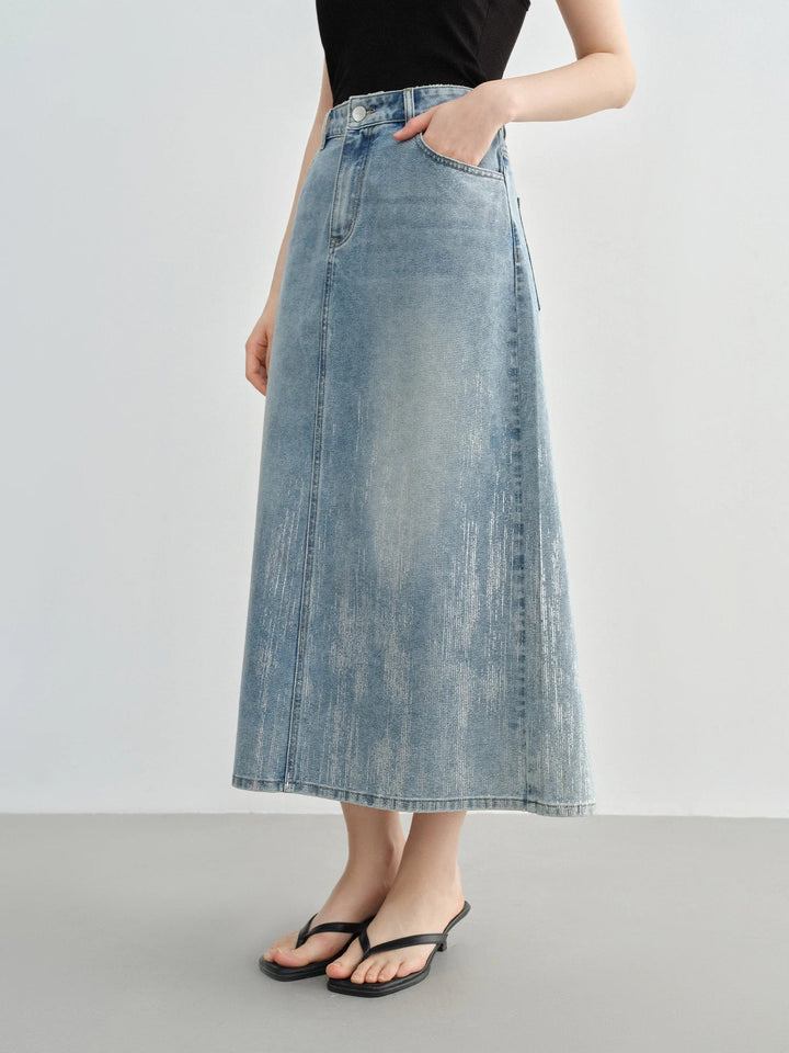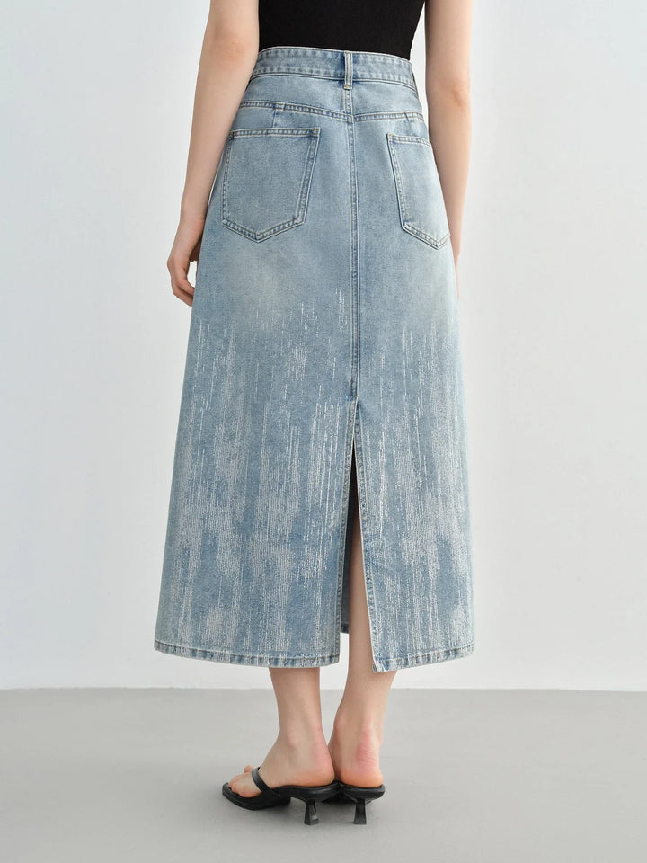 High Waist Slimming Mid Denim Skirt