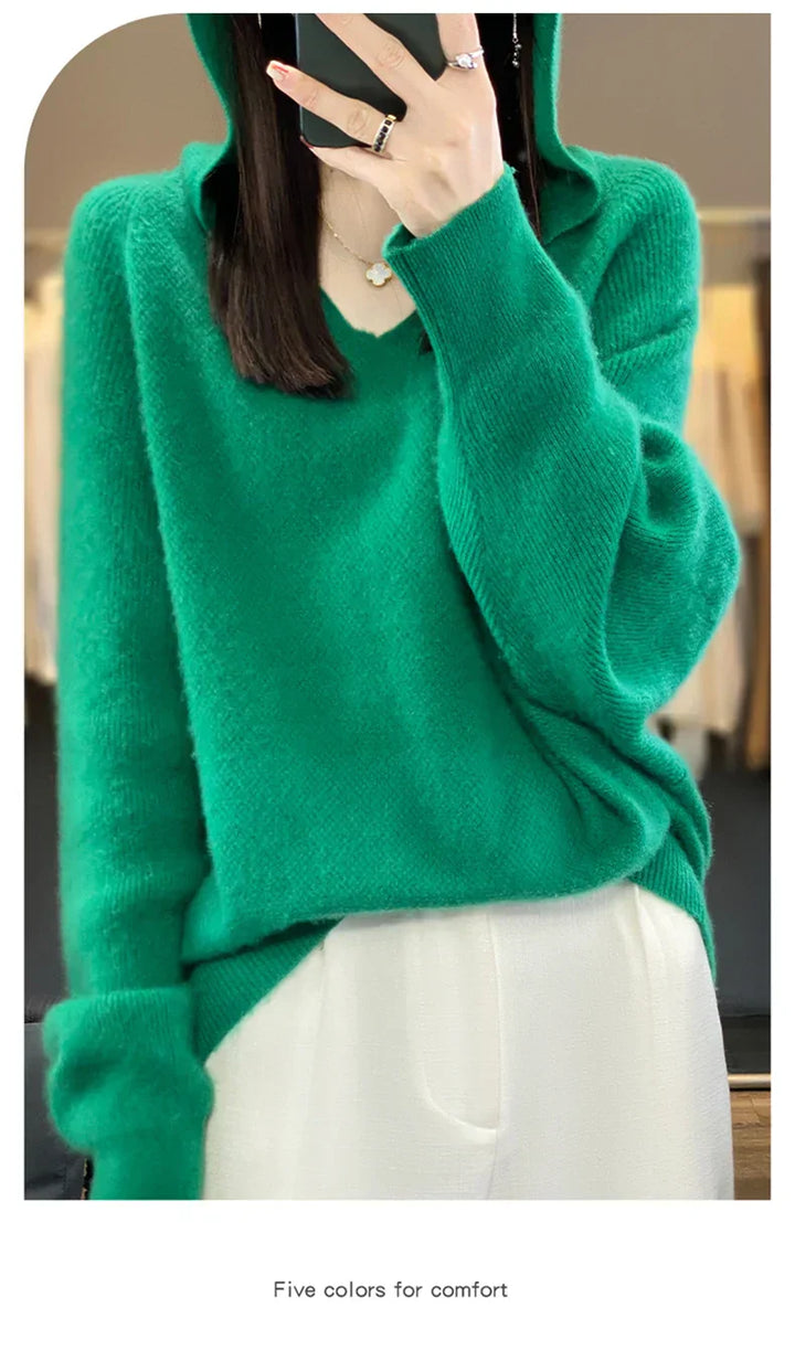 Hooded 100% Wool Knitted Sweater