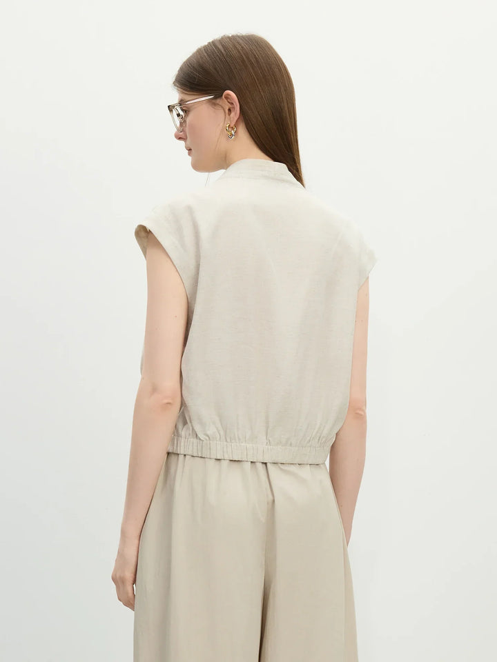 Material: 49.8% viscose, 36.8% polyester, 13.4% linen blend.
