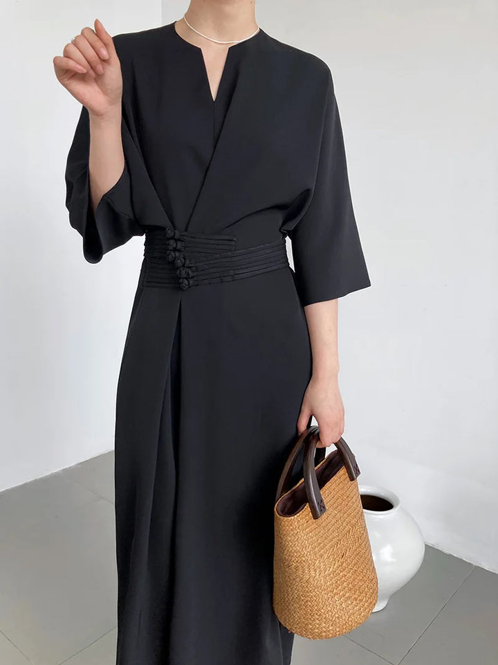 Long Sleeve V-neck Slim Waist Dress