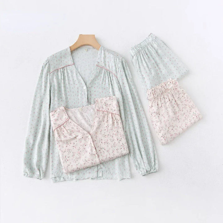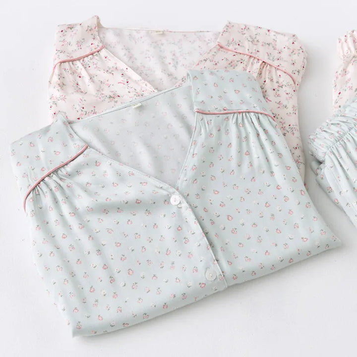 Long-sleeved Shirt & Pants Satin Pajamas Set
