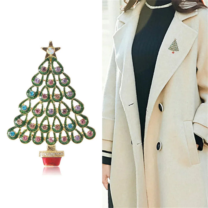 Christmas Tree Rhinestone Brooches Pins