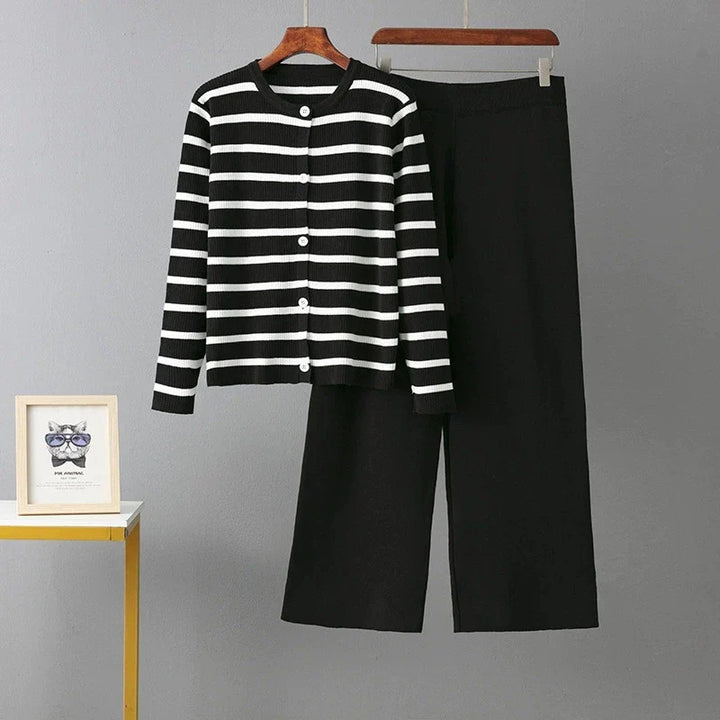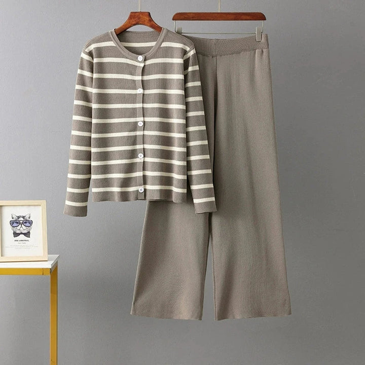O Neck Buttons Stripe Knit Loose Sweater Sets