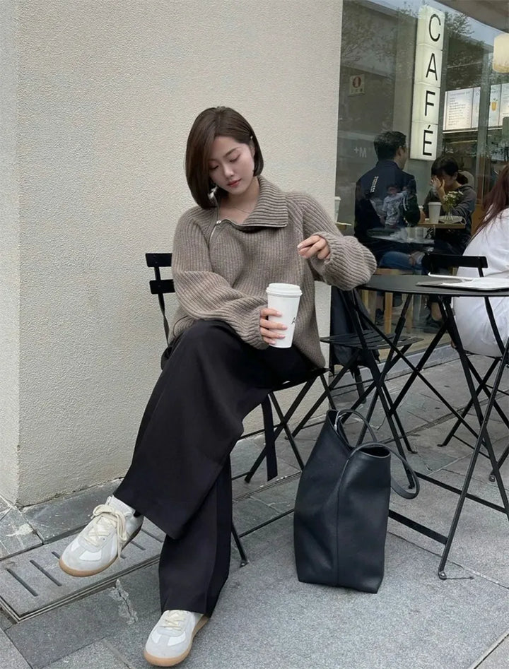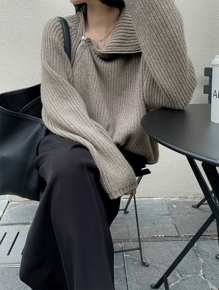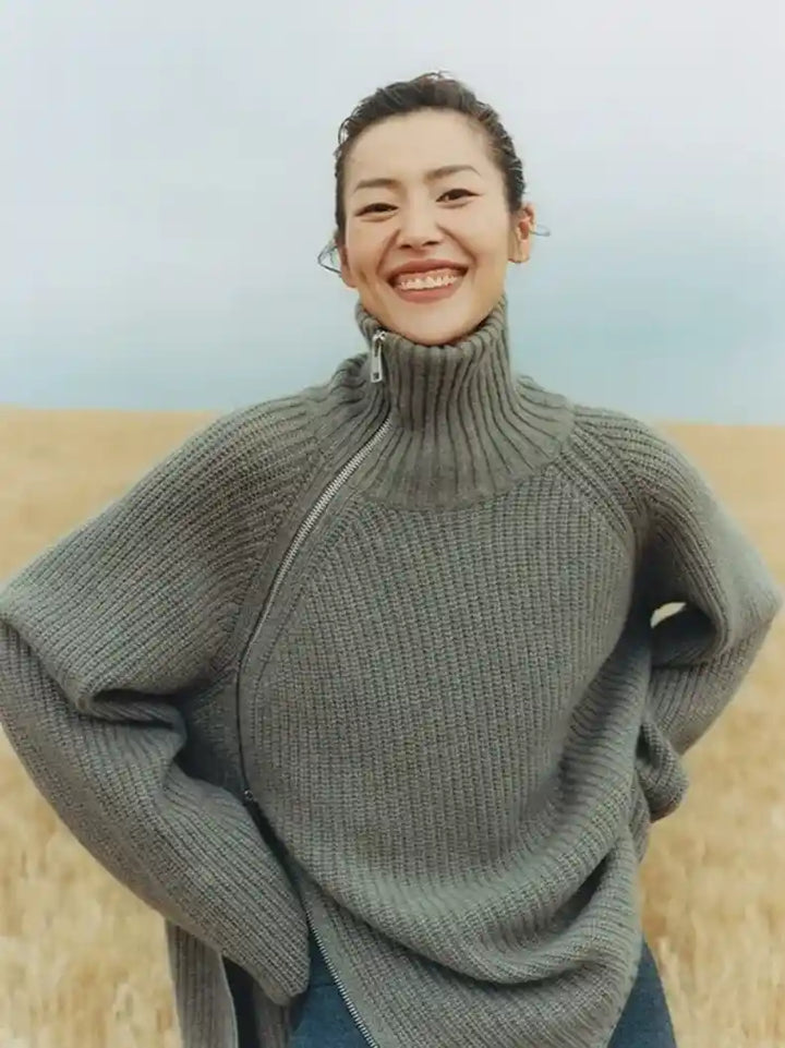 Oversized Irregular Zipper High Neck Cashmere Sweater