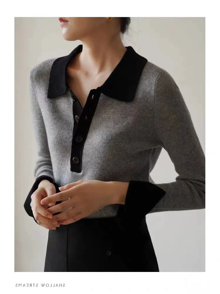 Polo Collar Wool Pullover Sweater