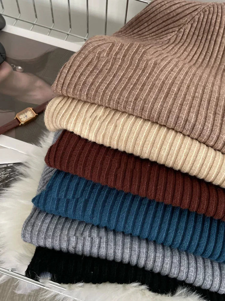 Ribbed Knitted Pullover & Wide Leg Pants Set