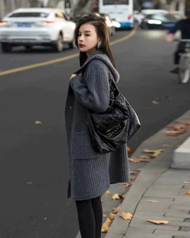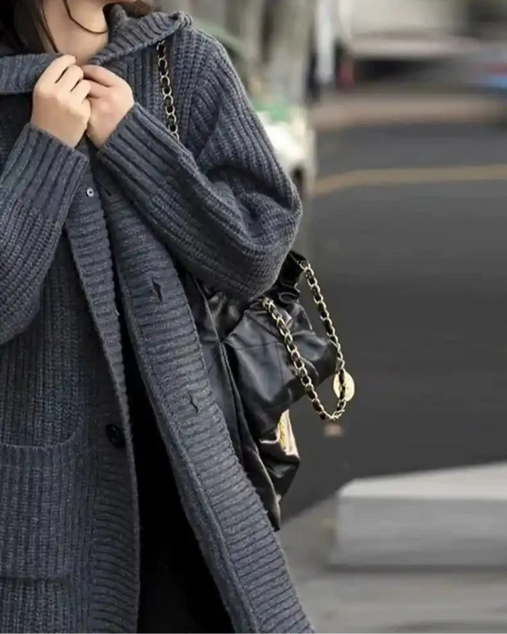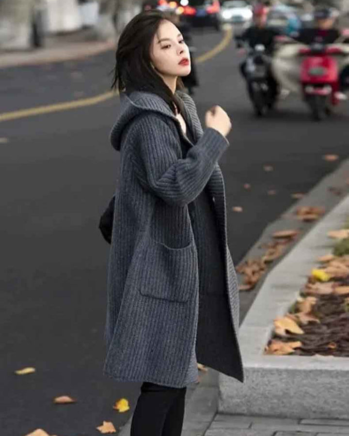 Single Breasted 100% Cashmere Ribbed Cardigan With Hoodie