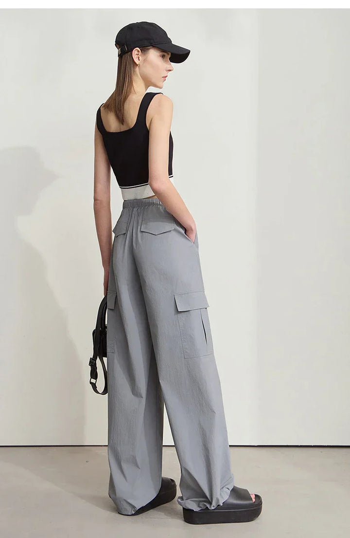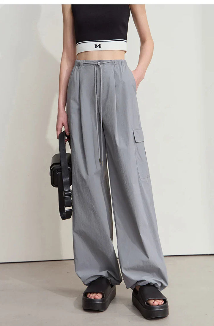 Solid Drawstring Wide-leg Pants
