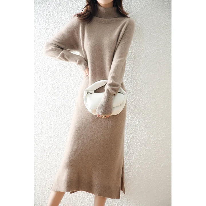 Turtleneck Pure Wool Knitted Dress