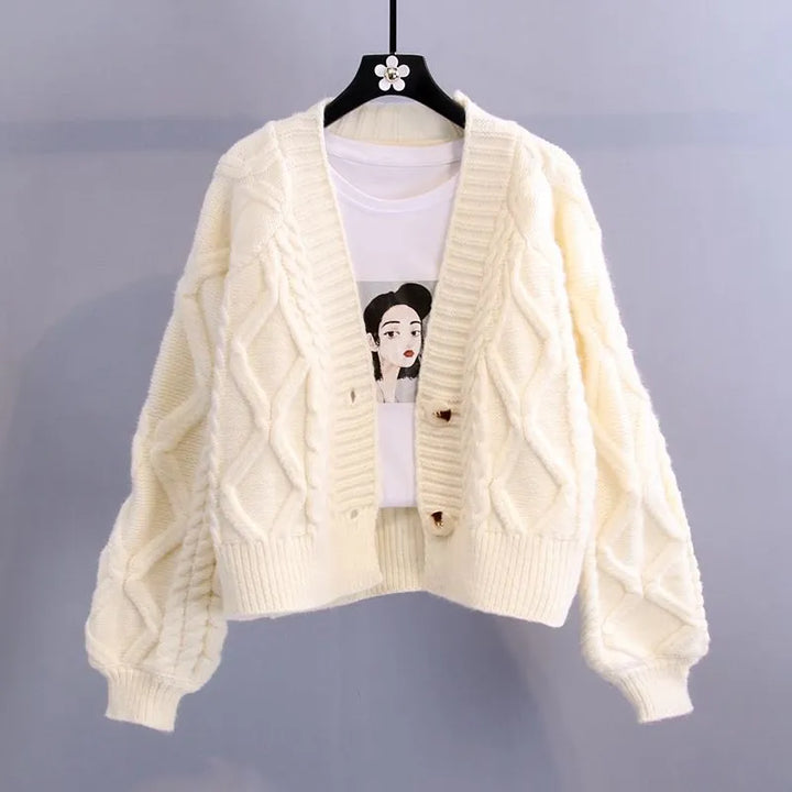 Twist Short V-Neck Single-breasted Knitted Cardigan