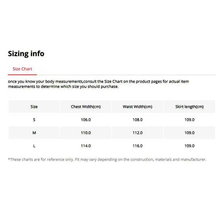 *These charts are for reference only.Fit may vary depending on the construction, materials and manufacturer. |