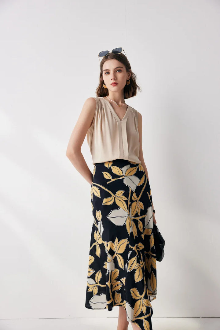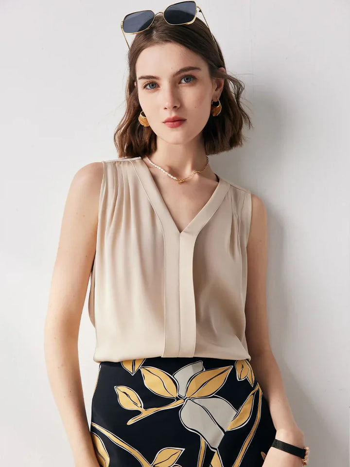 V-neck Solid Color Commuter Mulberry Silk Sleeveless Shirt