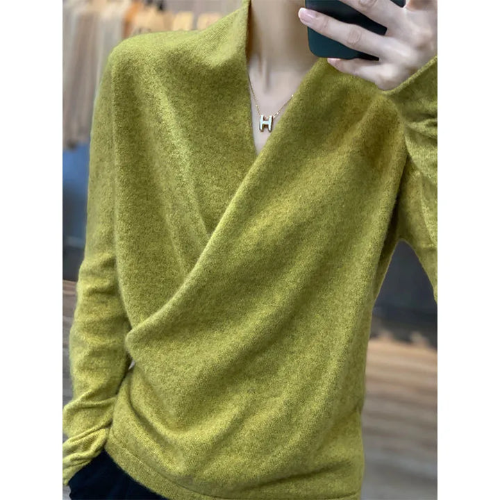 V-neck Wrap Style 100% Wool Knitted Sweater