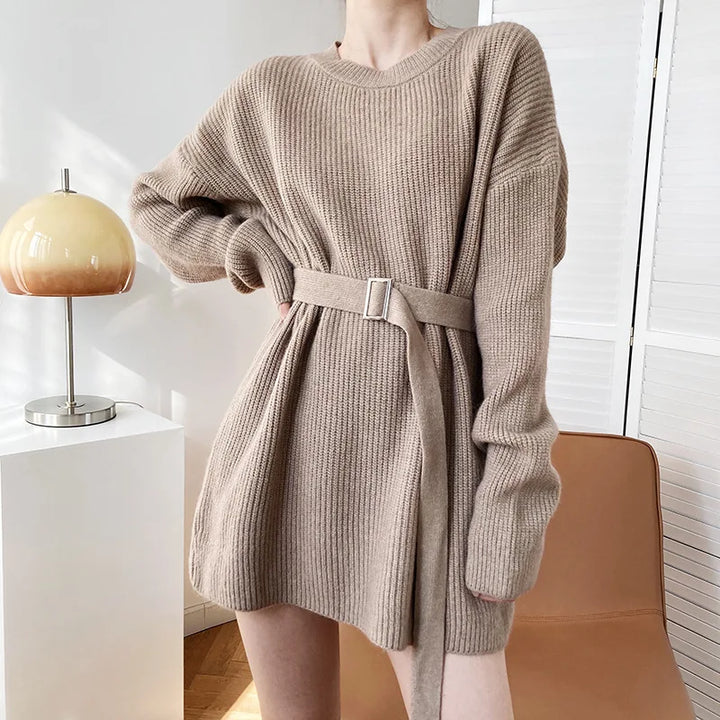 Vintage Round-neck Belted Knitted Dress