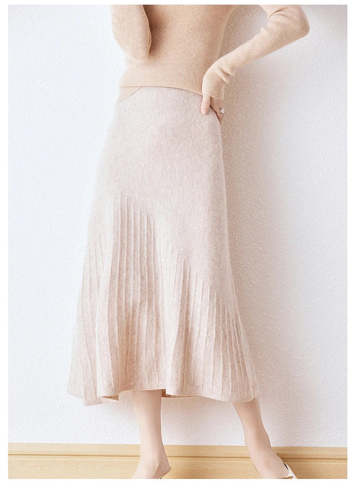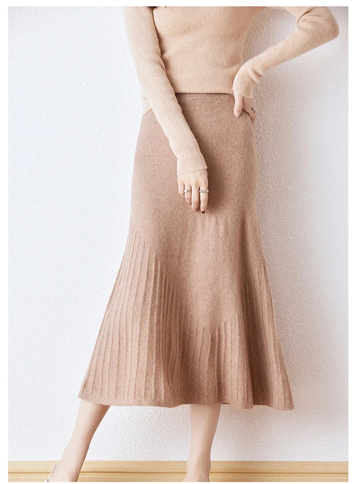 Wool Knitted High Waist A-Line Skirt