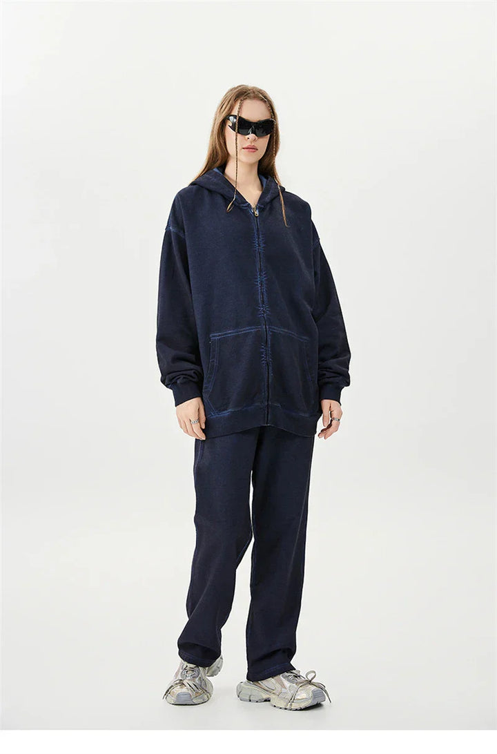 Zipper Washed Distressed Oversized Cotton Hoodies